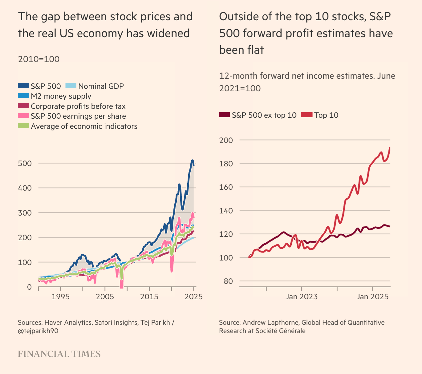 Die Datenlage der Trump-Ökonomie wird immer diffuser. Die Gewinne der Unternehmen werden durch die Top 10 dominiert. Das sind hauptsächlich die global agierenden großen Digitalkonzerne. Die nationale Ökonomie profitiert kaum. Die ohnehin bereits laufende Machtkonzentration nimmt weiter zu, die Breite der Ökonomie sieht nichts von den „Great Deals“.