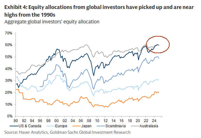 Sie bringt damit die hohe Konzentration auf US-Werte, speziell auf US-Aktien sowie die KI-Bewertungen, nüchtern auf den Punkt: Implizit wettet derzeit die ganze Welt auf diesen KI-Boom und die damit verbundenen Risiken sind weitaus höher als bei der Wette vor 25 Jahren auf den Internet-Boom.