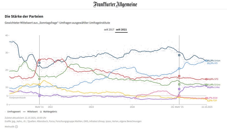Die jüngste Forsa-Umfrage legt nah, dass die Union die Hälfte ihrer Wähler verlieren könnte, wenn sie sich der AfD nähert. Das gehört zum Szenario Marginalisierung, welches in unserem Wahlsystem die wahrscheinlichere Variante ist.