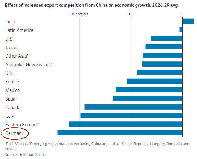 – Goldman Sachs schätzt daraus entstandene Wachstumsverluste bei den wichtigsten industriellen Wettbewerbern. Der größte Verlierer ist dabei die deutsche Volkswirtschaft.